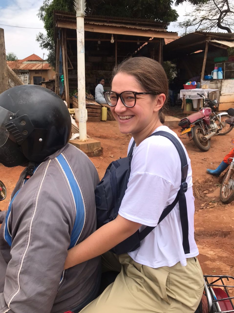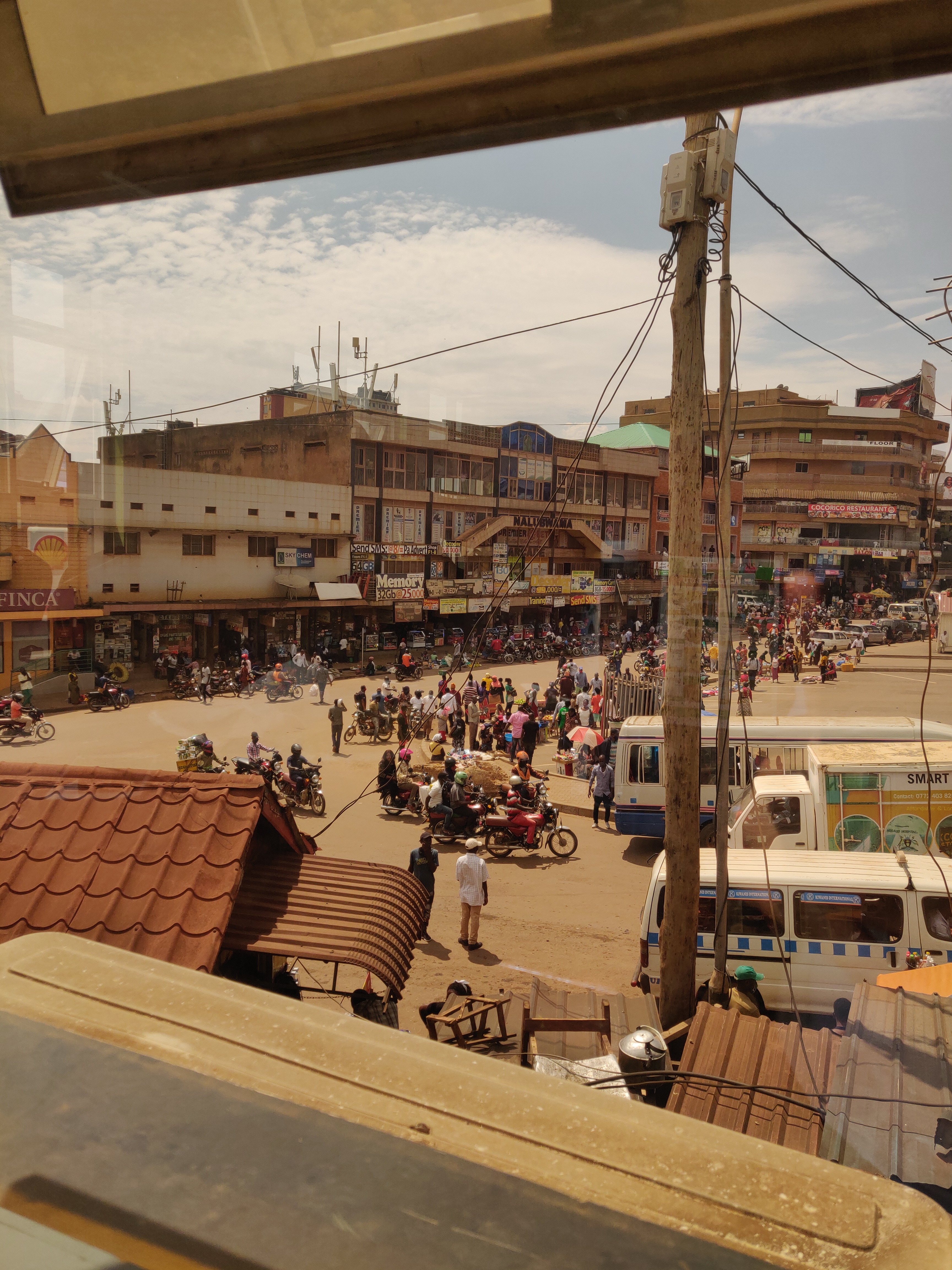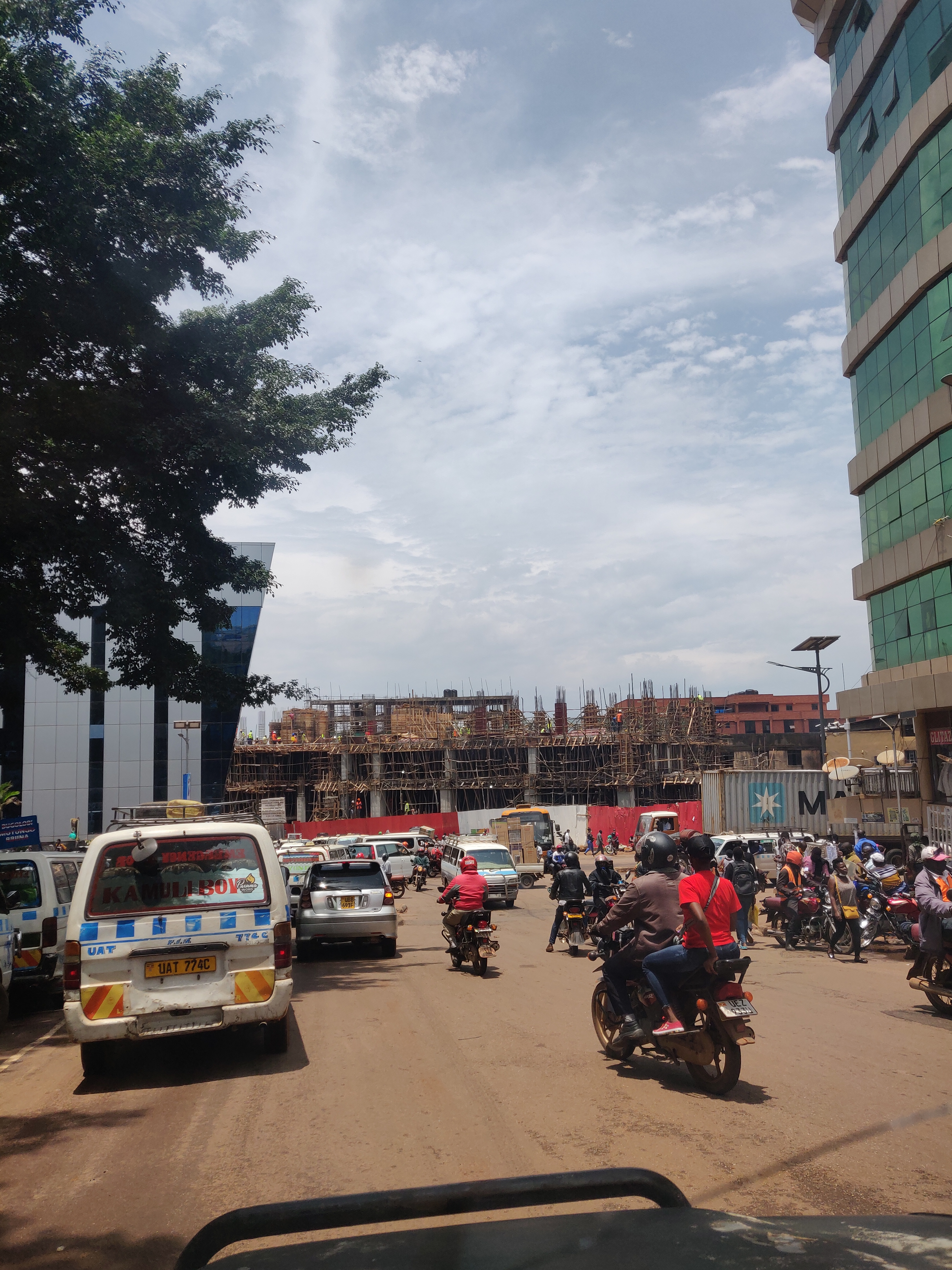 Iš ryto sužinojau, jog manęs laukia diena Kampaloje! Mano gidai – Sharon (vadovės dukterėčia, irgi dirbanti organizacijoje) bei Mark (vadovės sūnus). Pirma kelionės dalis jau savaime buvo nuotykis – pirma kelionė boda boda. Mintyse persižegnojau, sėdau ir kelionė prasidėjo. Nors ir buvo baisoka važiuoti be šalmo ir dar vietiniais keliais, bet seniai kada bejaučiau tokį laisvės jausmą. Buvo tikrai linksma ir kelionės metu jaučiausi gan saugiai. Tapo aišku, dėl ko ši transporto priemonė tokia populiari. Ir manau, kad tai puikus būdas susipažinti su aplinka tokio tipo ir klimato vietose kaip Uganda. ~ 20 min. kelionė link centro sukainavo 12000 UGS (Ugandos šilingų) / ~ 3€.