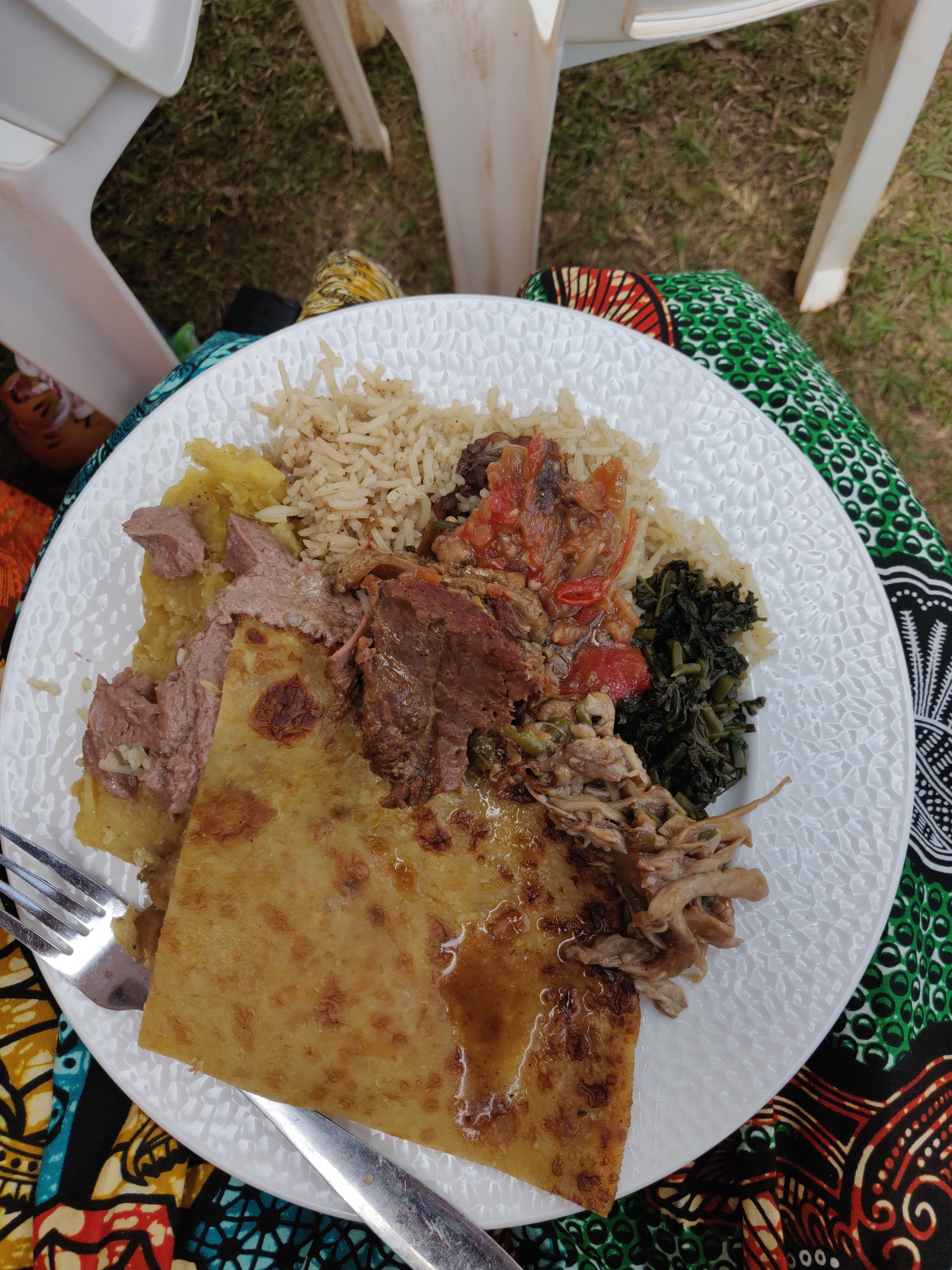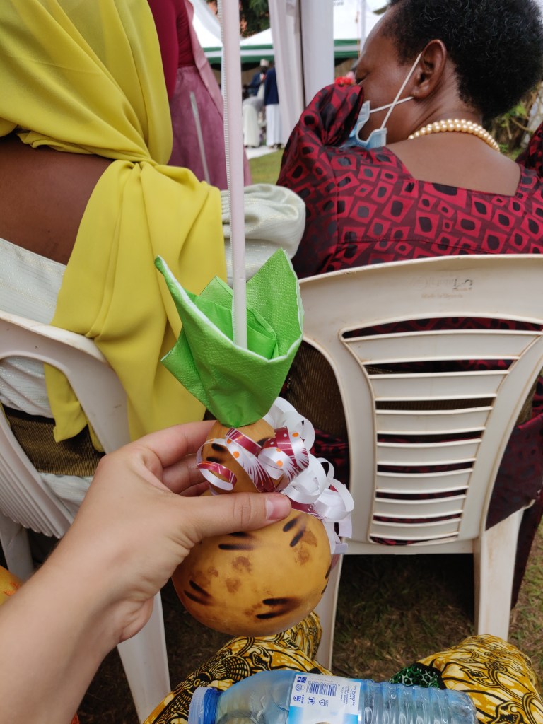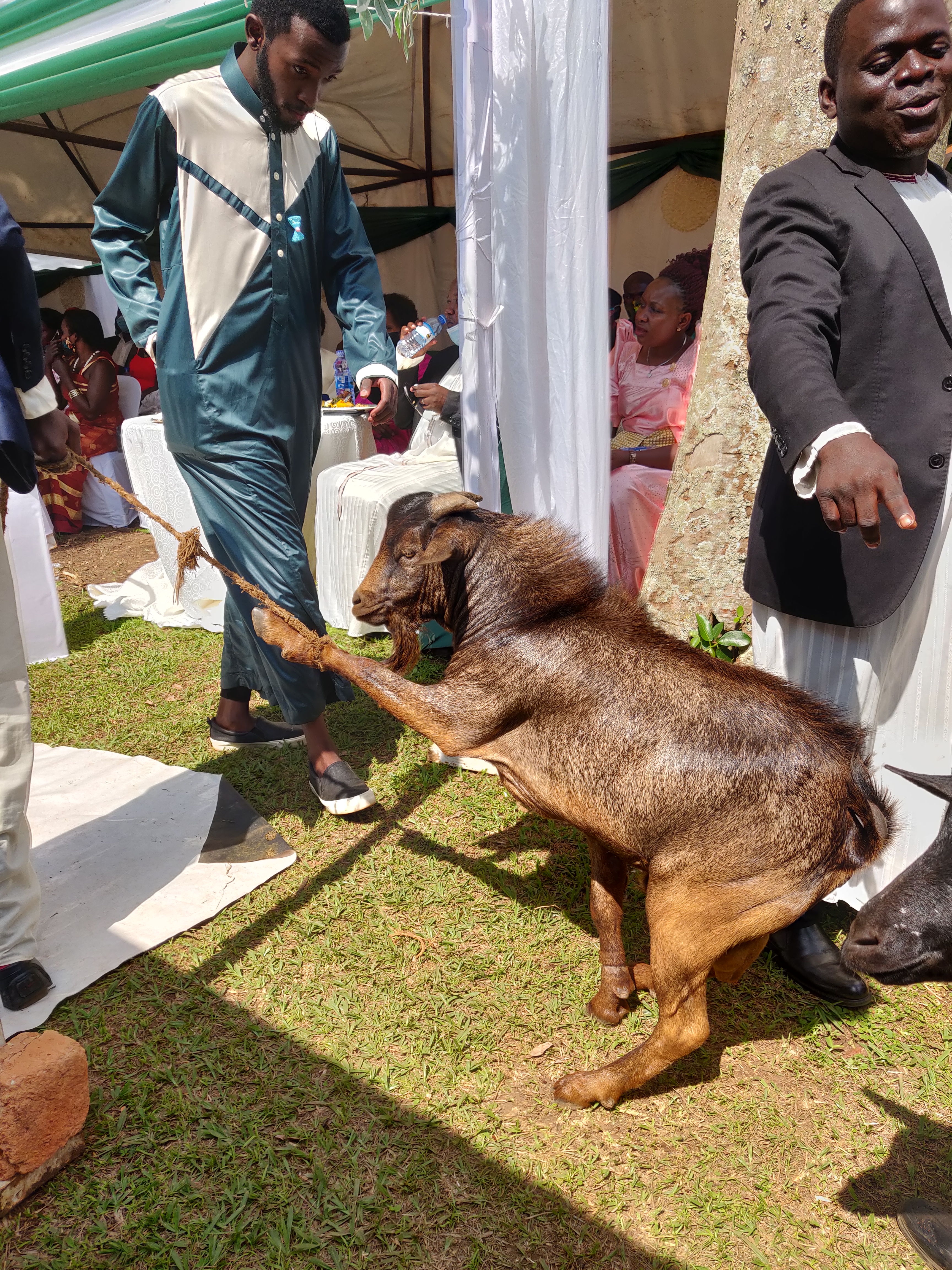 Prasuksim link vienos iš paskutinių dalių – jaunikio šeimos dovanų jaunosios šeimai. Jau bepradedant snūduriuoti nuo karščio ir 3val. ceremonijos mane gan greit išbudino kai pastebėjau nešamą ir ant manęs beužvirsiantį didžiulį (žinoma tuščią) vandens rezervuarą. Po jo sekė vedamos ožkos bei kartoninėse dėžėse nešamos vištos. Vėliau pasirodė garsus (bent man taip buvo paminėta) daininkas, kuris dainavo bei linksmino svečius. To fone prie medžio pririštos ganėsi ožkos. Nusprendžiau, jog šis momentas buvo ,,African wedding in a nutshell“. Smagu, kad visų nesibaigiančių šokių bei jaunųjų tėvų viešų kalbų fone buvo pateikti pietūs (nes food is life). Gan tradiciniai ir kaip visad prajuokino šūksniai ,,Mzungo, i‘ve been waiting for you all my life!”. Visgi išbuvus bene 5val. ceremoniją mane nuliūdino žinia, jog dėl Covid-19 pandemijos įvestų reikalavimų – nesibūriuoti be kaukių bei nuo 19val. prasidedanti komendanto valanda – nevyks joks afteris ir nebus šokių. O būtų buvę taip linksma! Ta liūdnesne nata susipakavome ir pasigavę boda boda parvažiavom namo, kur laukė vakarienė bei pažintis su šiandien šviežiai atvykusiu savanoriu iš UK – James.